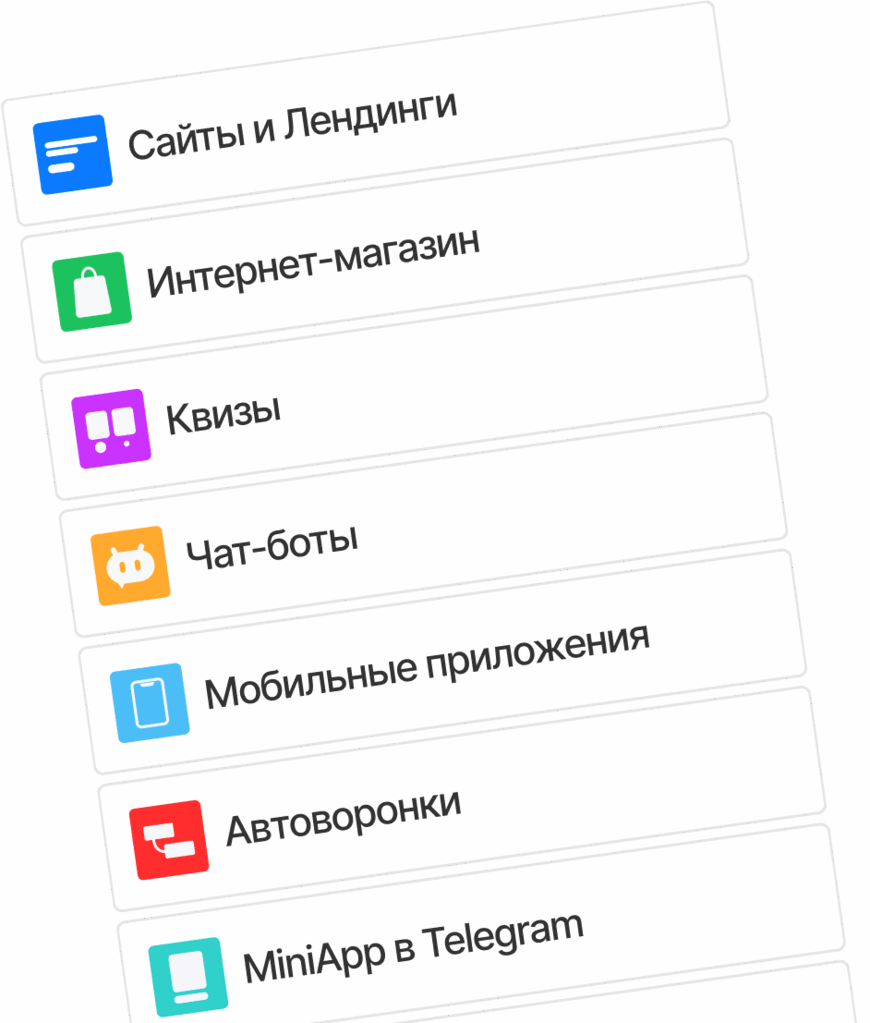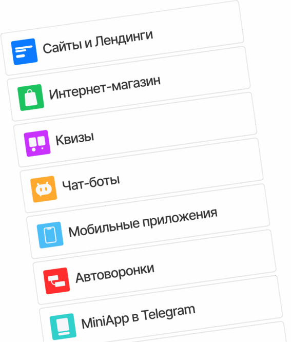 Сайты, магазины, квизы, ИИ-инструменты, чат-боты, автоворонки, приложения и Telegram MiniApp –