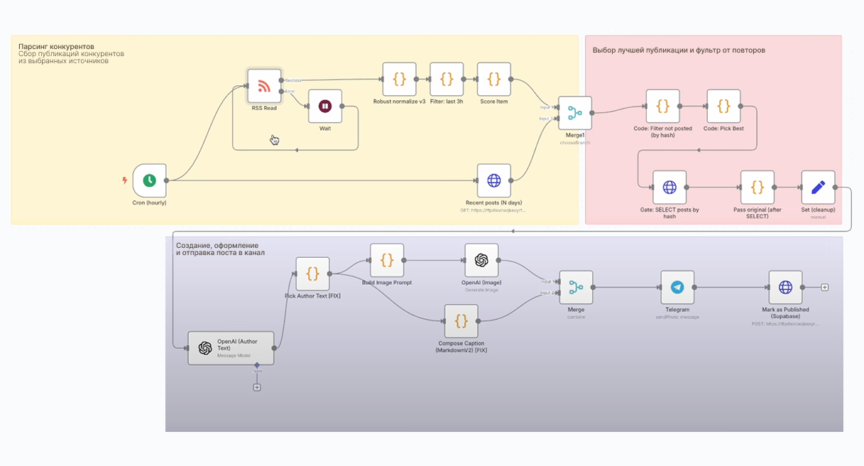 Комплексное руководство по созданию системы автоматической генерации и публикации контента в Telegram-каналах с использованием n8n, GPT и соблюдением всех правовых норм.