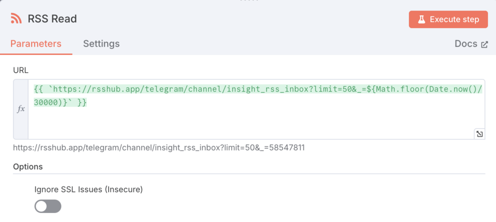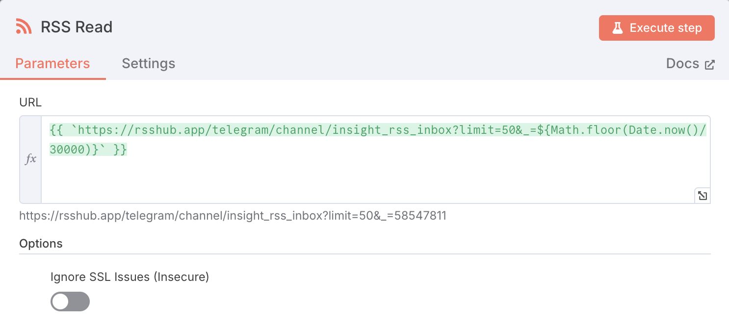 "url": "https://rsshub.app/telegram/channel/YOUR_CHANNEL?limit=50&_={{Math.floor(Date.now()/30000)}}",
