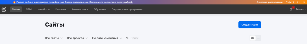 Конструктор сайтов, чат-ботов, автоворонок, мобильных приложений