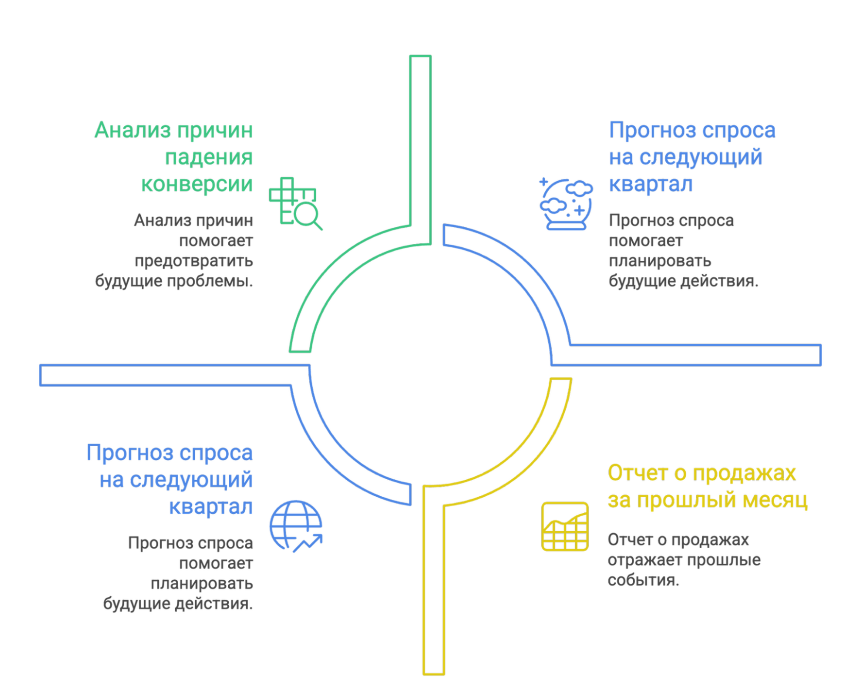 | Машинное обучение (ML) | Алгоритмы, выявляющие паттерны в данных для прогнозов и классификации без явного программирования под каждую задачу. | Прогнозирование LTV (пожизненной ценности) клиента для оптимизации маркетингового бюджета. |