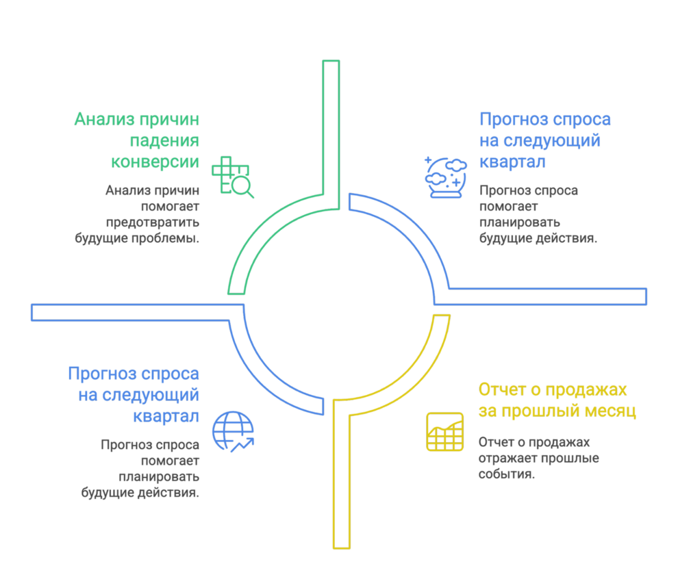 | Генеративный ИИ | Модели, создающие новый контент (текст, изображения, код) на основе входных данных и промптов. | Генерация рекламных текстов для A/B-тестирования или идей для дизайна продукта. |