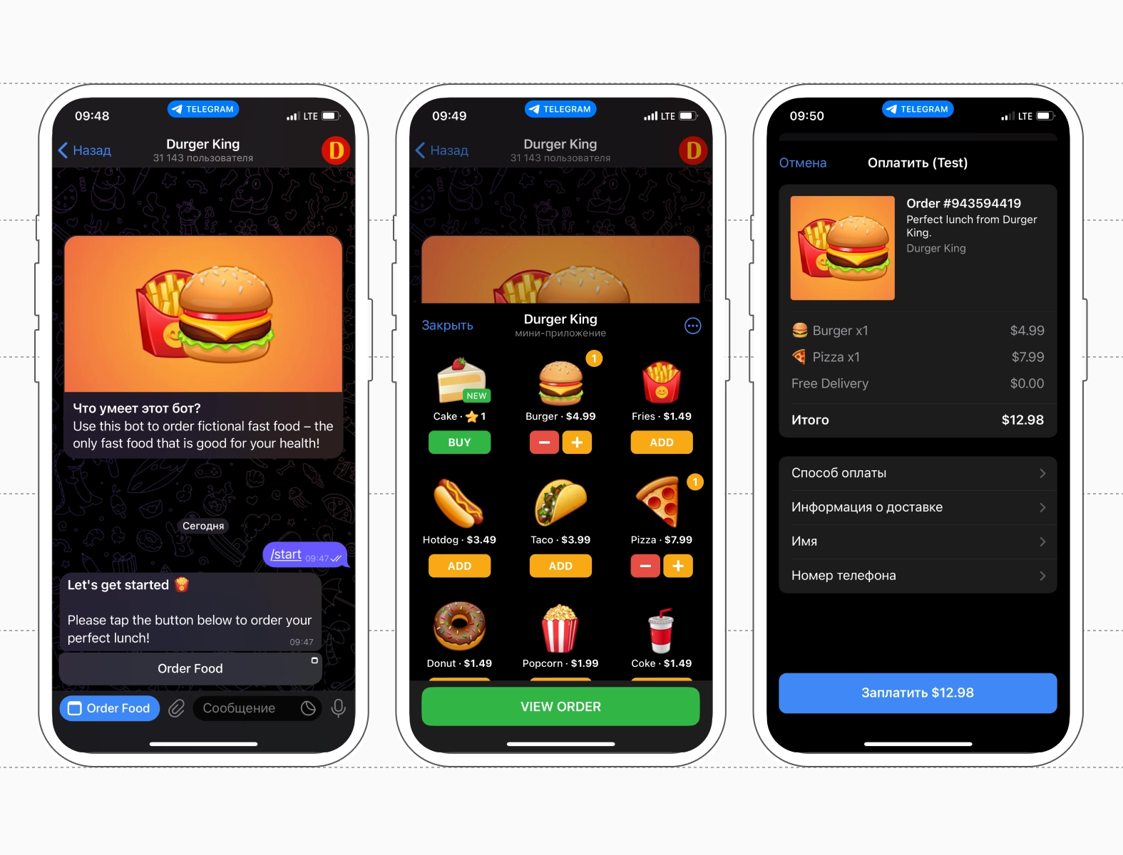 | UX | Диалог, кнопки | Экранный UI «как сайт» | Экранный UI | «как Telegram‑клиент/мессенджер» |