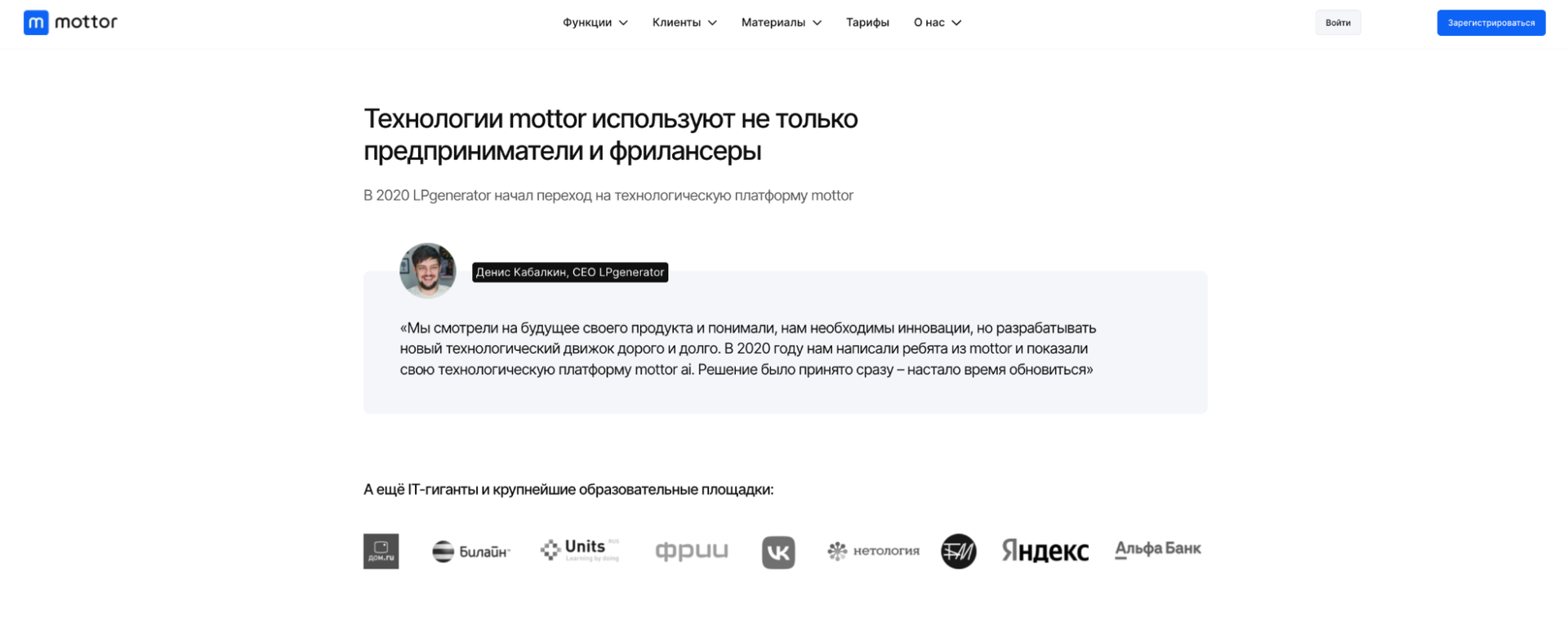Логотипы известных изданий, которые писали о вас или являются вашими клиентами в данный момент, создают ореол авторитетности. Даже небольшая статья в местной газете добавляет легитимности.