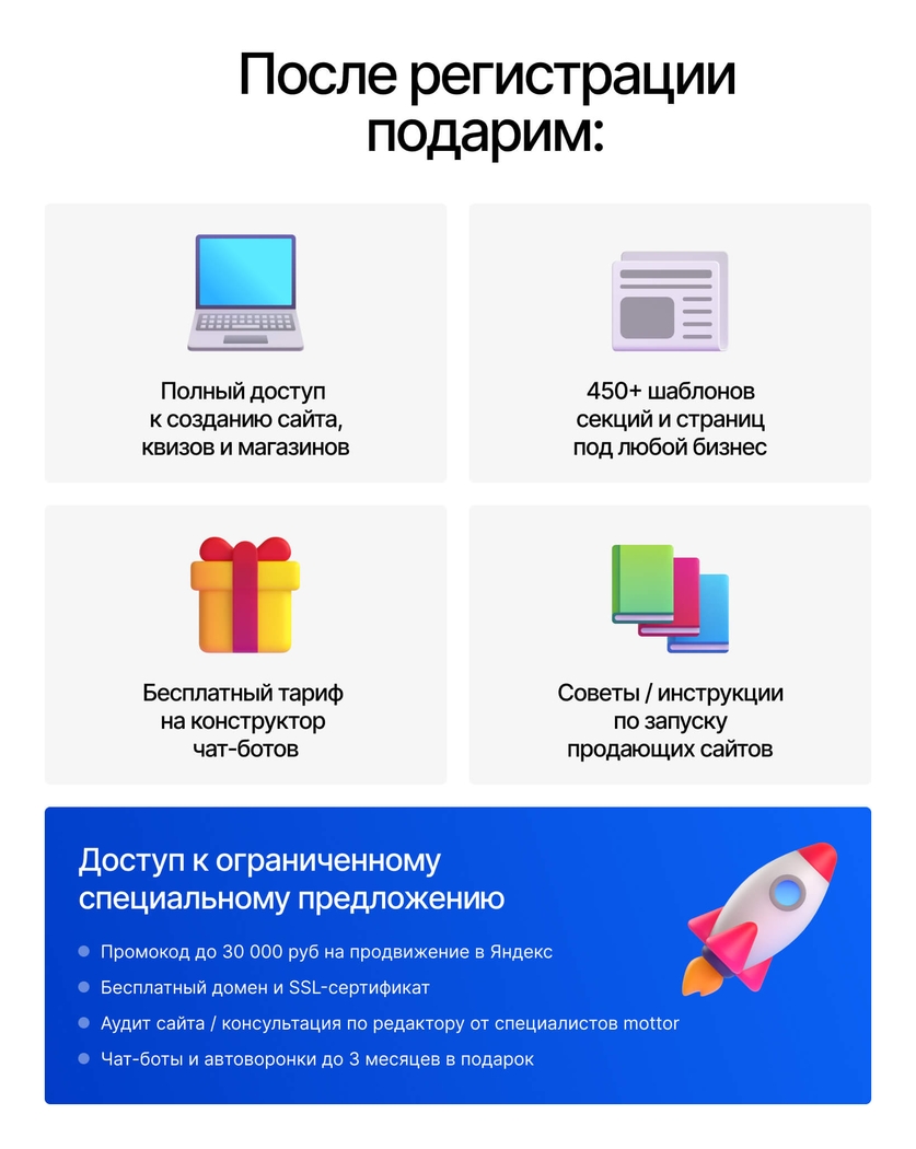 Конструктор сайтов, чат-ботов, автоворонок, мобильных приложений