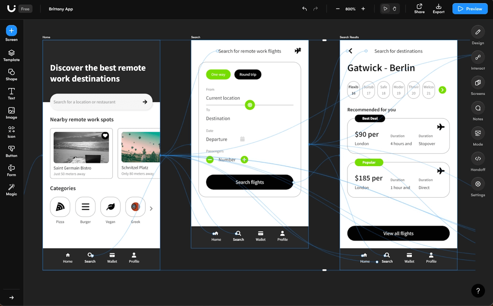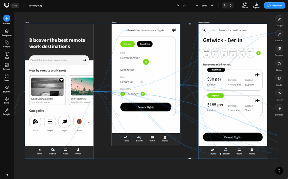 Современные AI-инструменты для дизайна позволяют автоматизировать повторяющиеся операции и значительно ускорить процесс создания прототипов. Платформы, как Uizard используют простые текстовые подсказки для создания полноценных прототипов, включая новые экраны, темы и изображения.