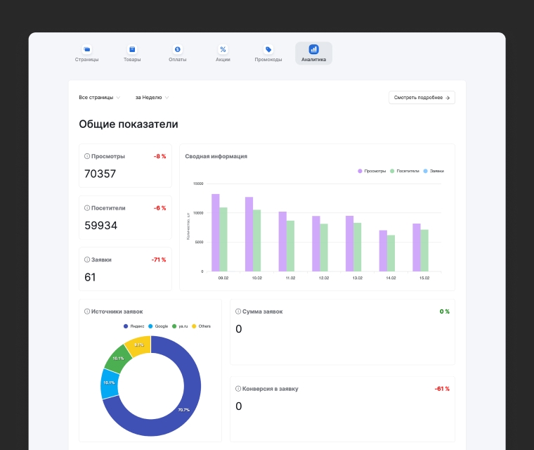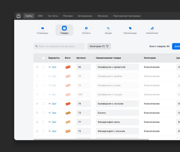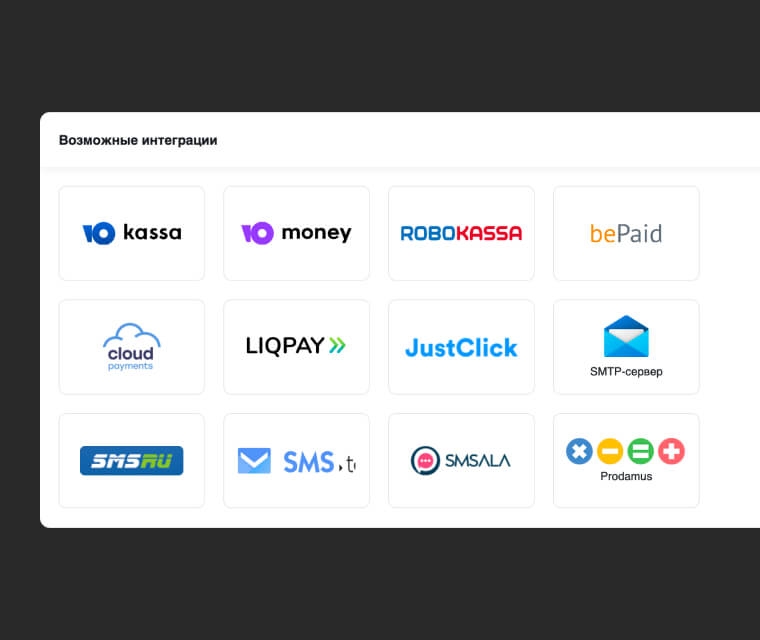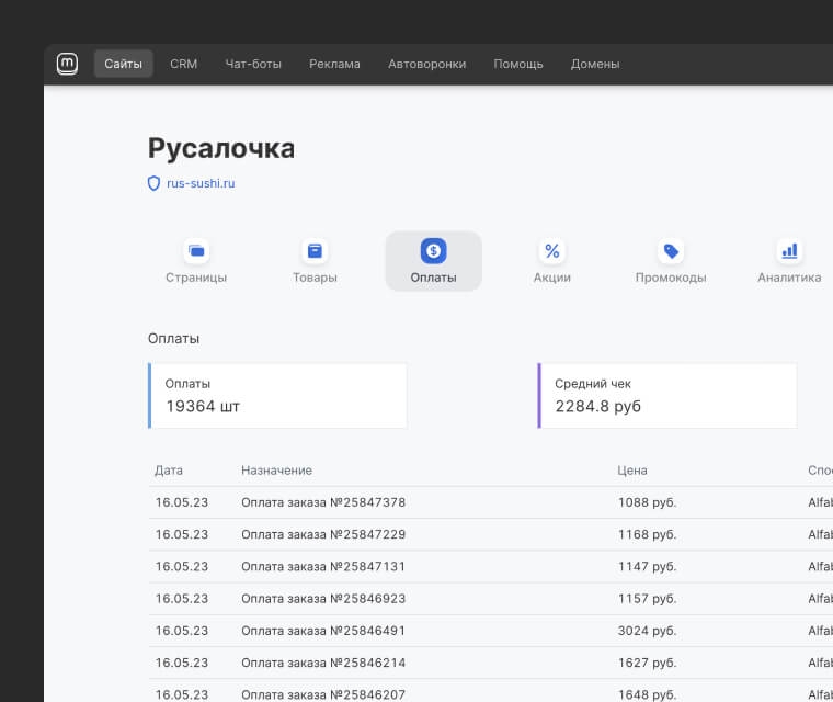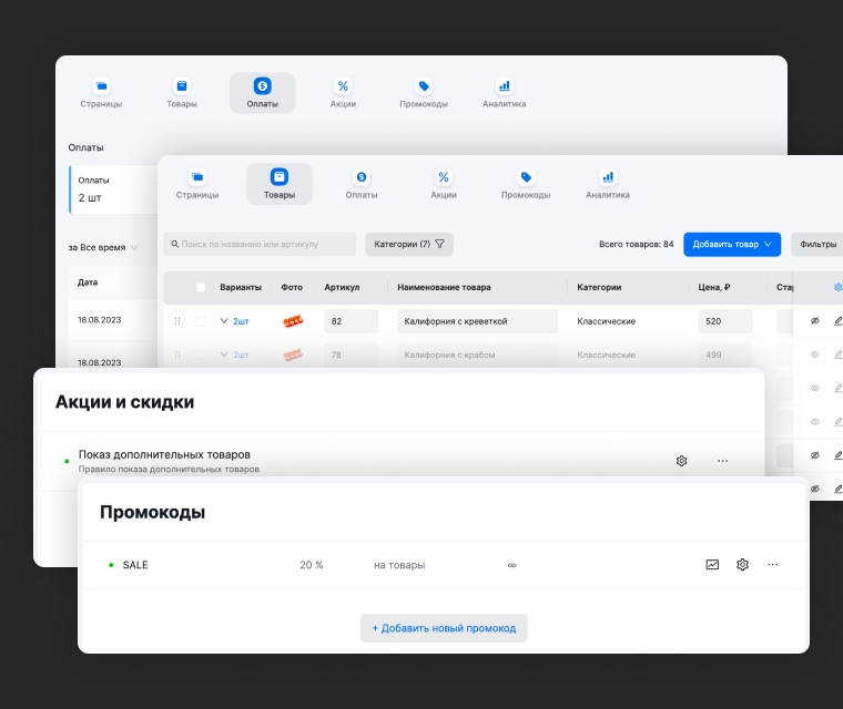 Инструменты работают как единая воронка: сайт/магазин → заявки → догрев → оплата