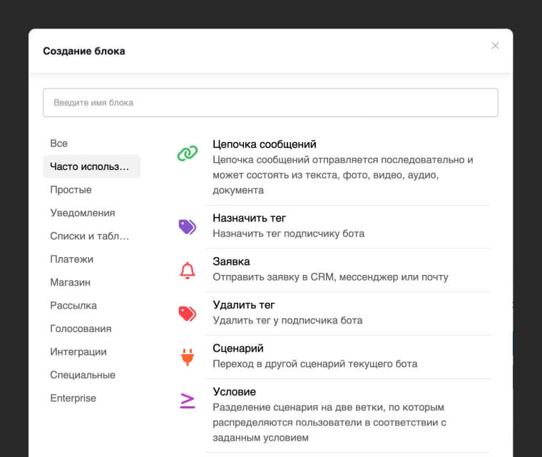 Продукты подключались отдельно: чат-боты, автоворонки, приложения, MiniApp