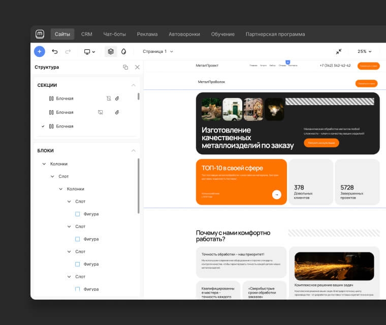 Конструктор сайтов, чат-ботов, автоворонок, мобильных приложений