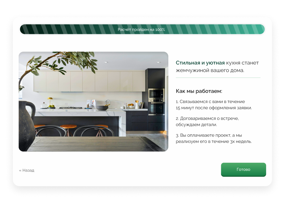 какая кухня ему подходит и указаны этапы работы с подрядчиком.