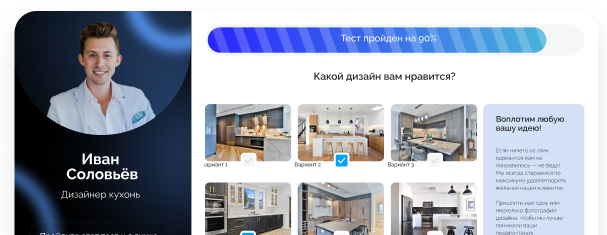 Мы реализовали все важные элементы, которые помогают клиенту не покидать квиз в процессе прохождения экрана.
