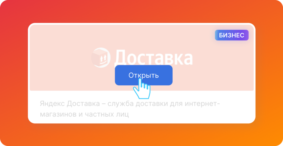 • Прокрутите список до раздела «Доставка товаров». Наведите курсор на модуль «Яндекс Доставка» и нажмите кнопку «Открыть».