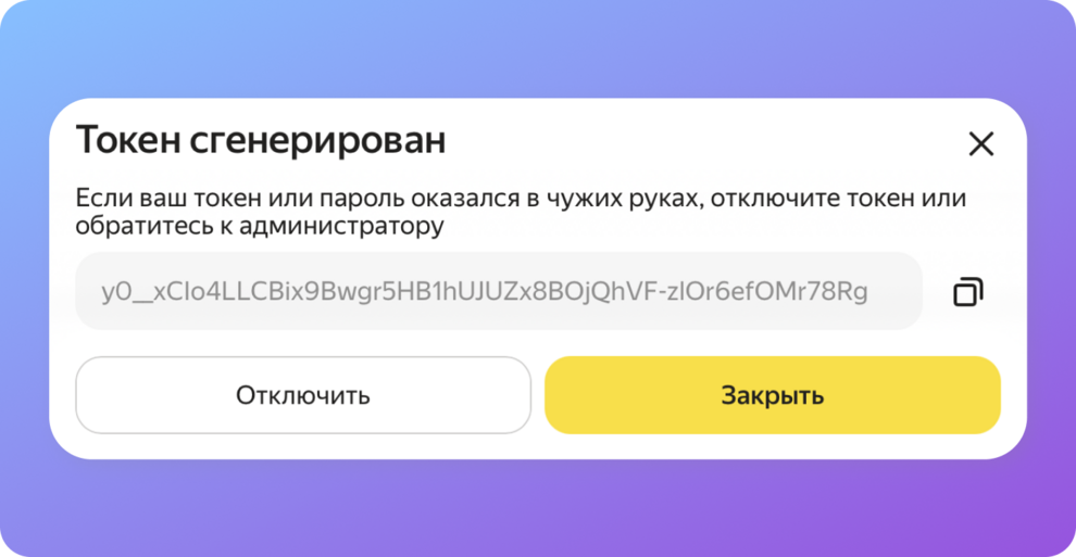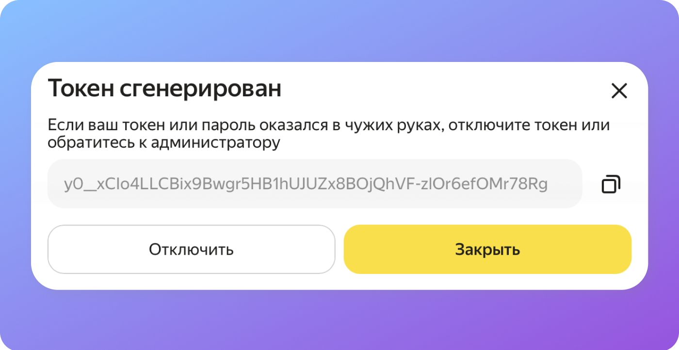 • Нажмите на иконку «Скопировать», чтобы скопировать ваш API-ключ (токен).