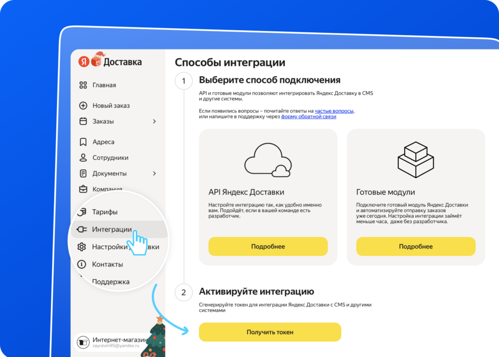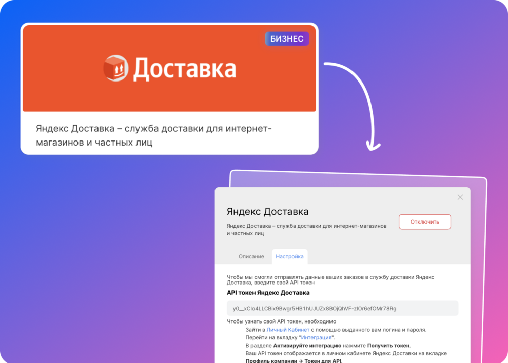Для подключения интеграции с «Яндекс Доставкой»: