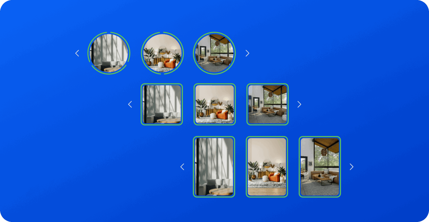 Сторис - появляются при клике на группу в виде слайдера с набором изображений