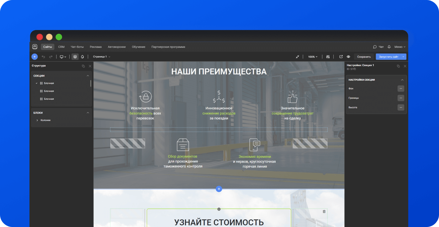 Конструктор сайтов, чат-ботов, автоворонок, мобильных приложений
